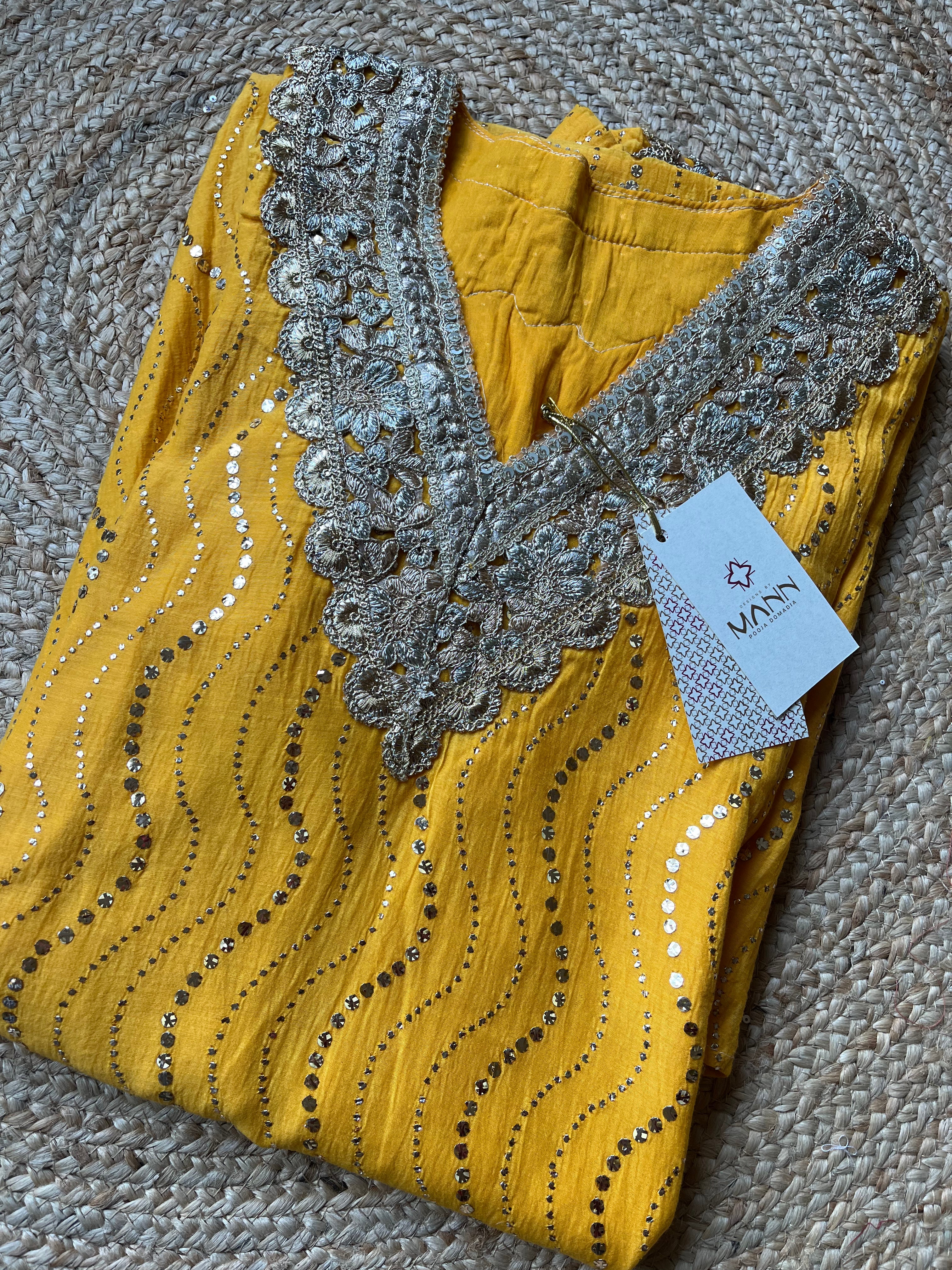 Golden Mustard Mal Mukaish Co-ord set suit with mukaish work.