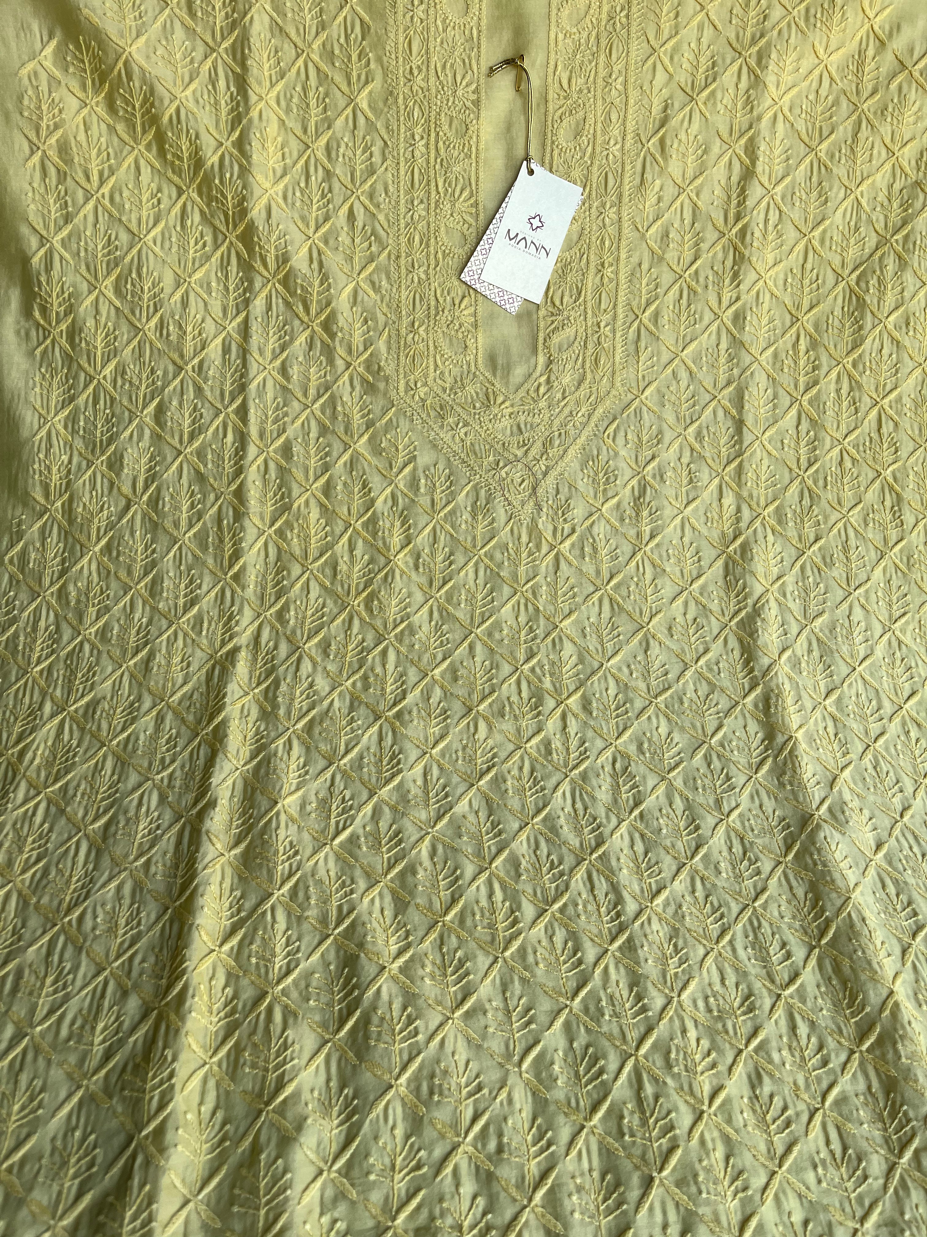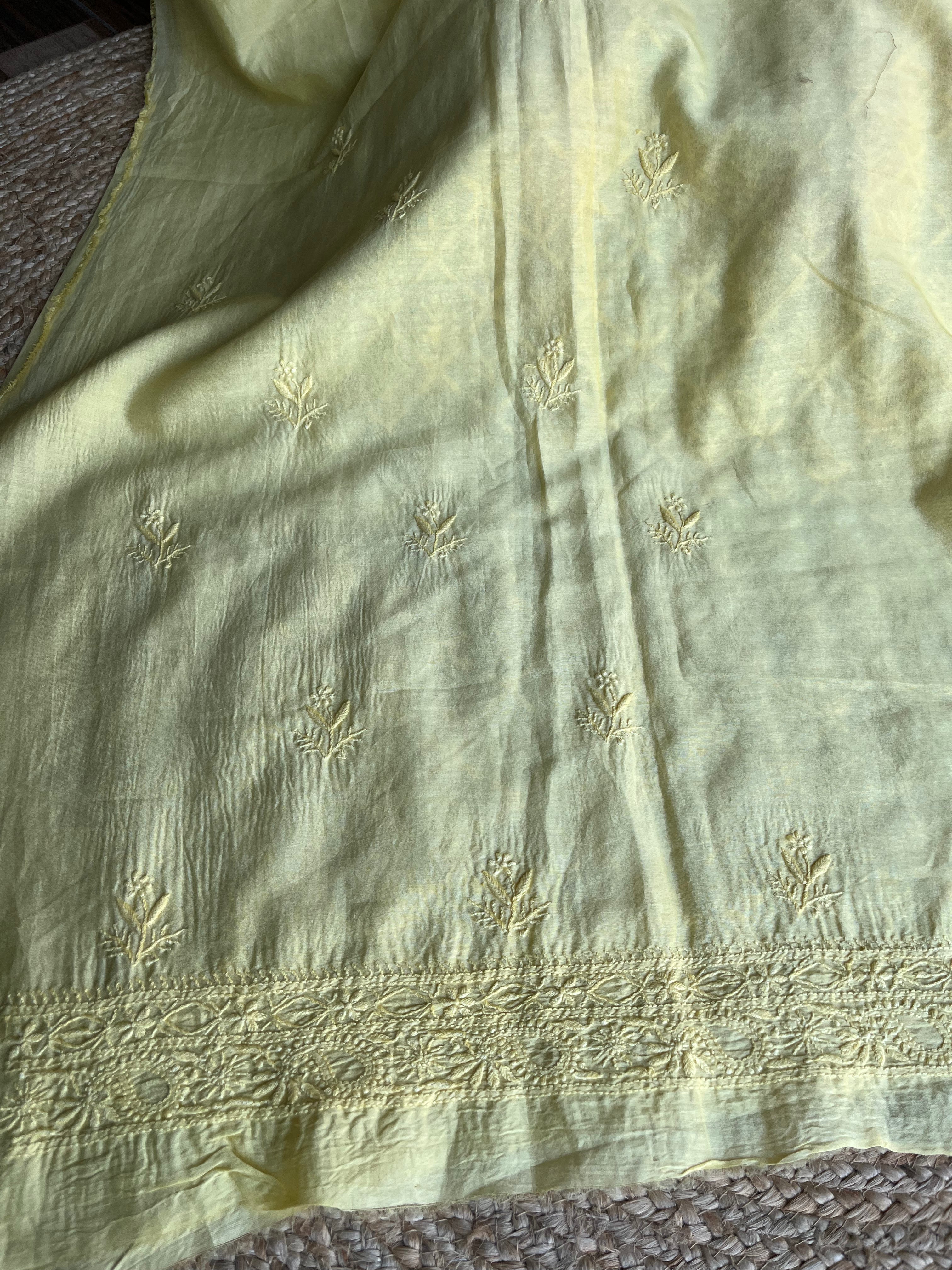 Lime Yellow Chanderi Silk Chikankari Kurta Fabric