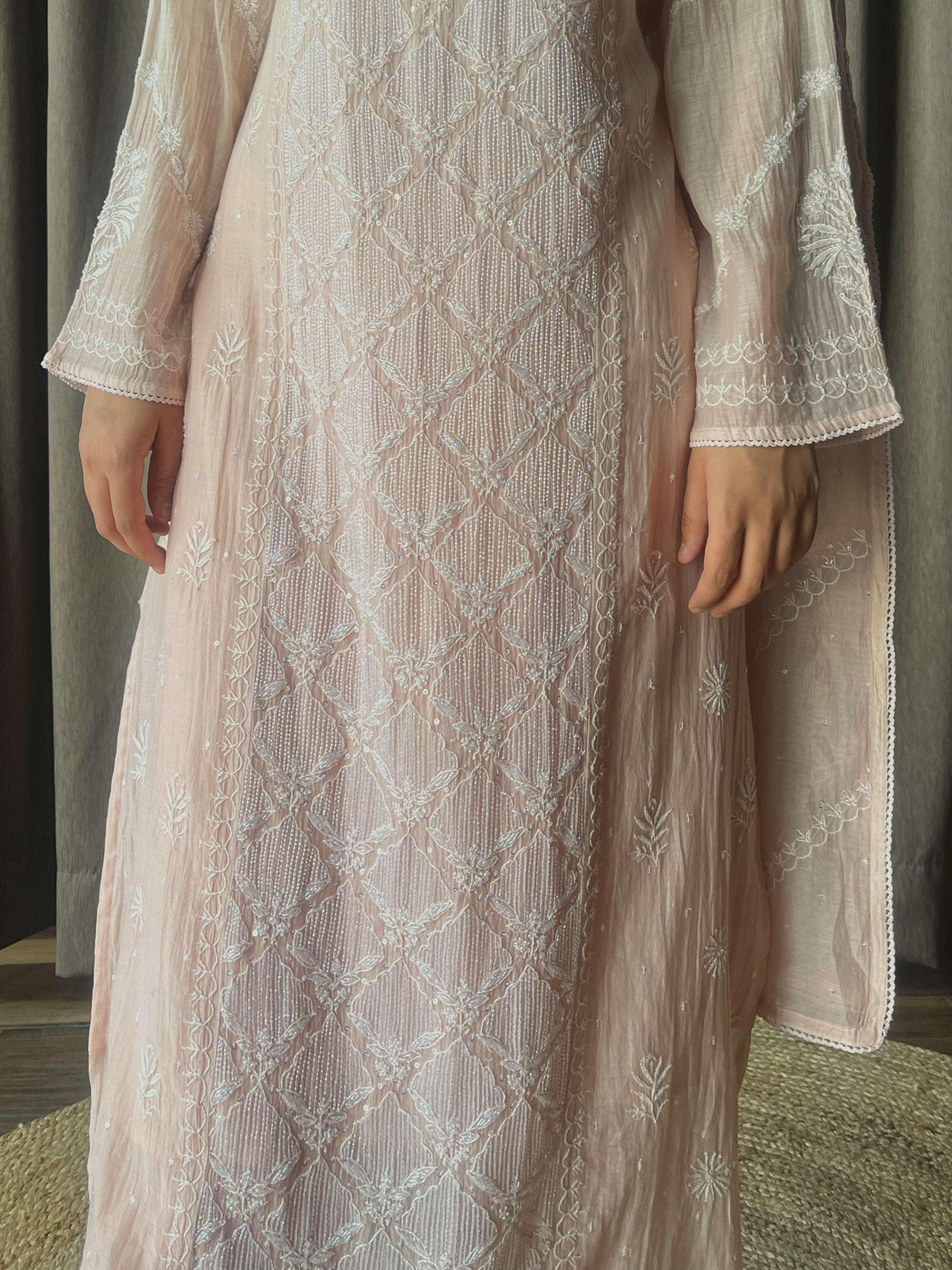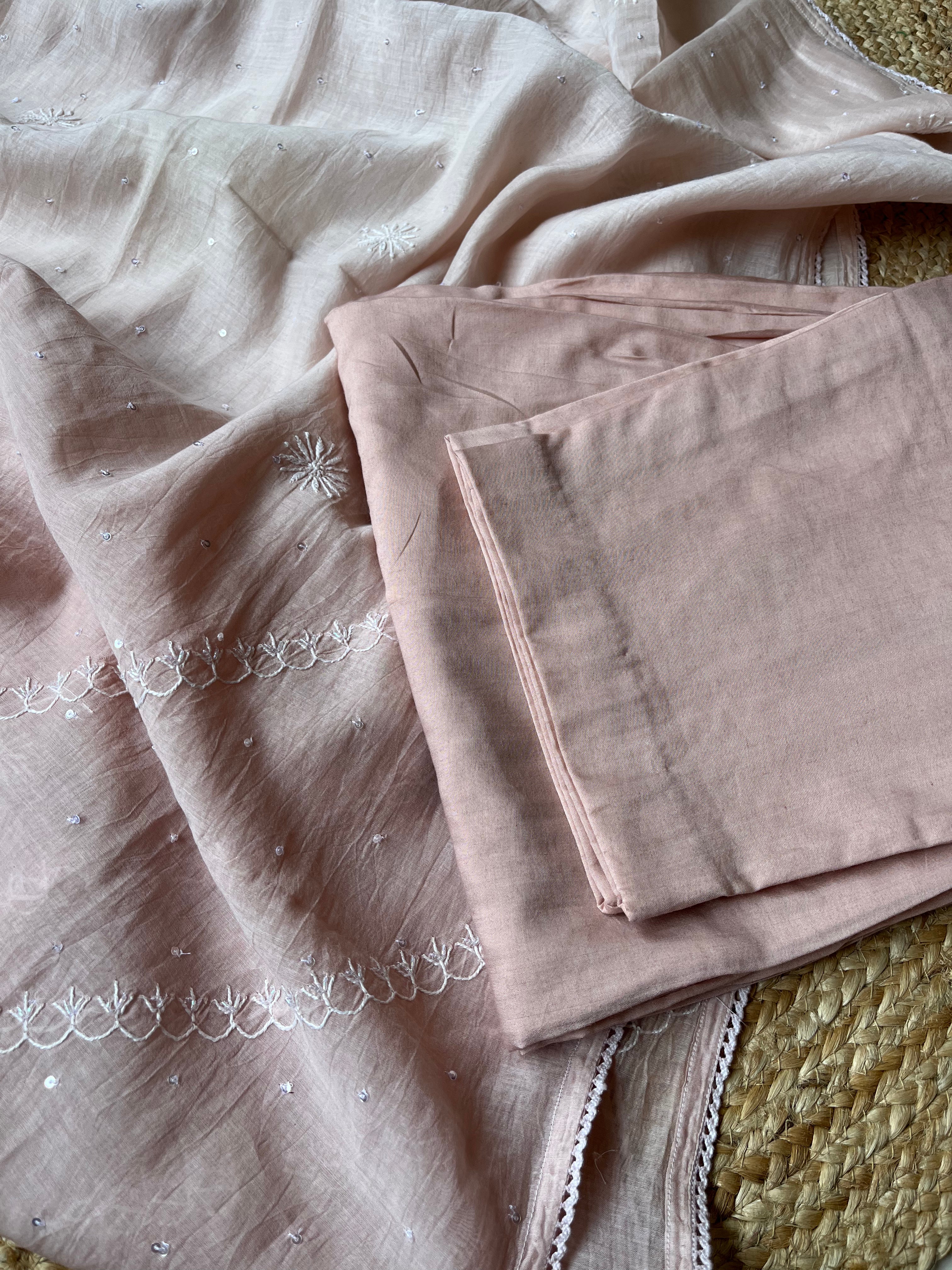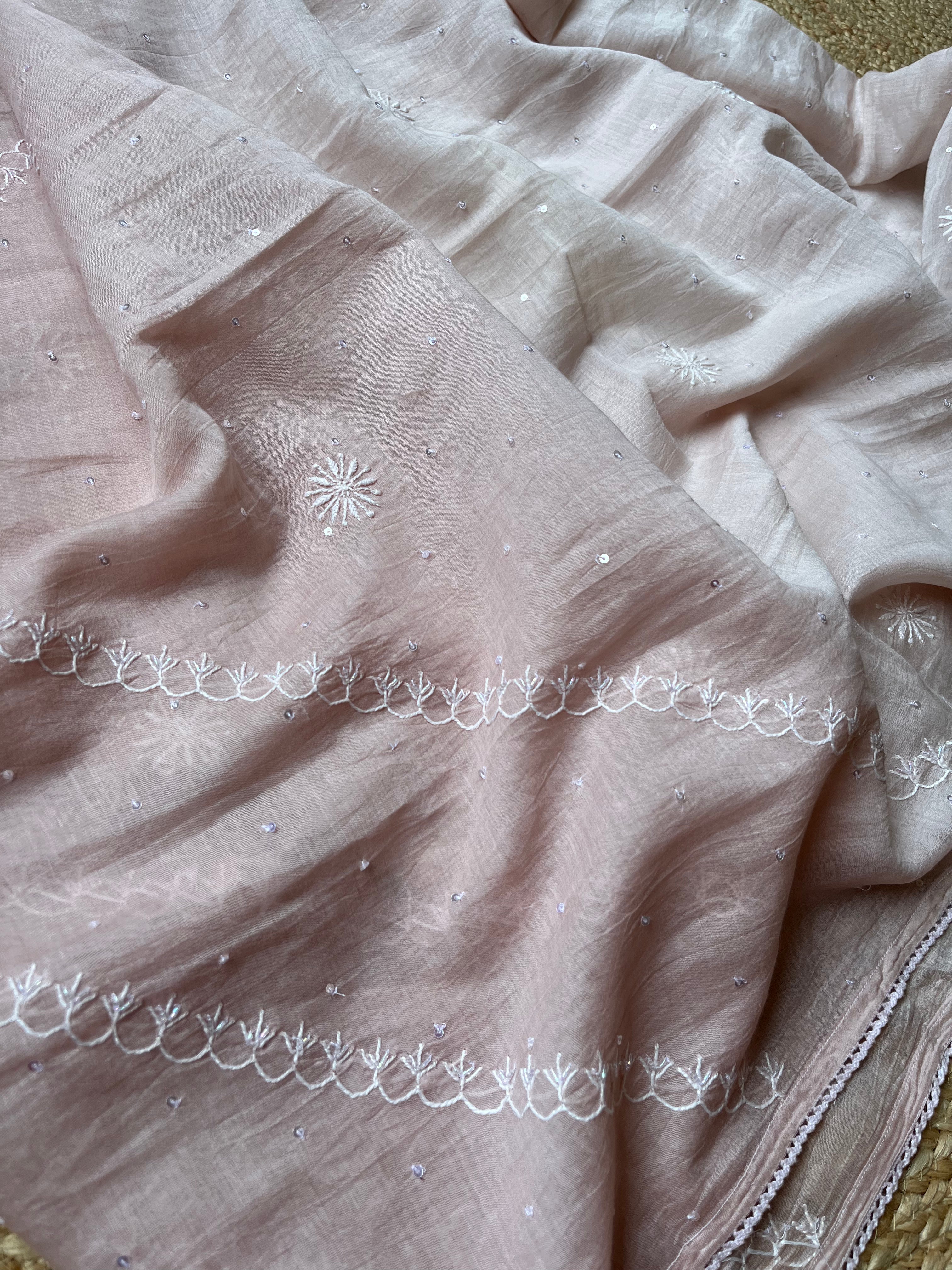 Mal Chanderi Suit Set in chikankari with embellishmnets in cutdana and sequins