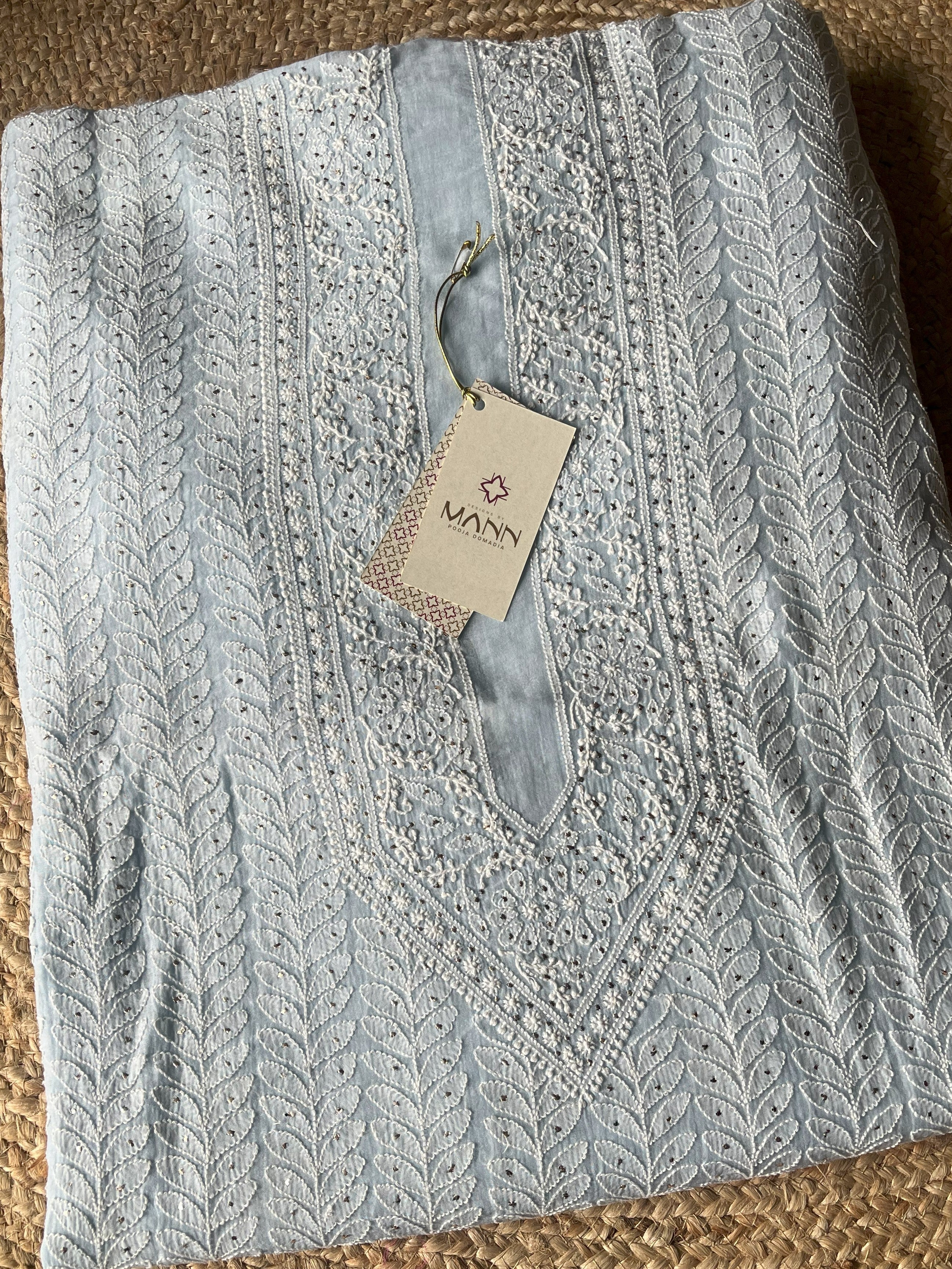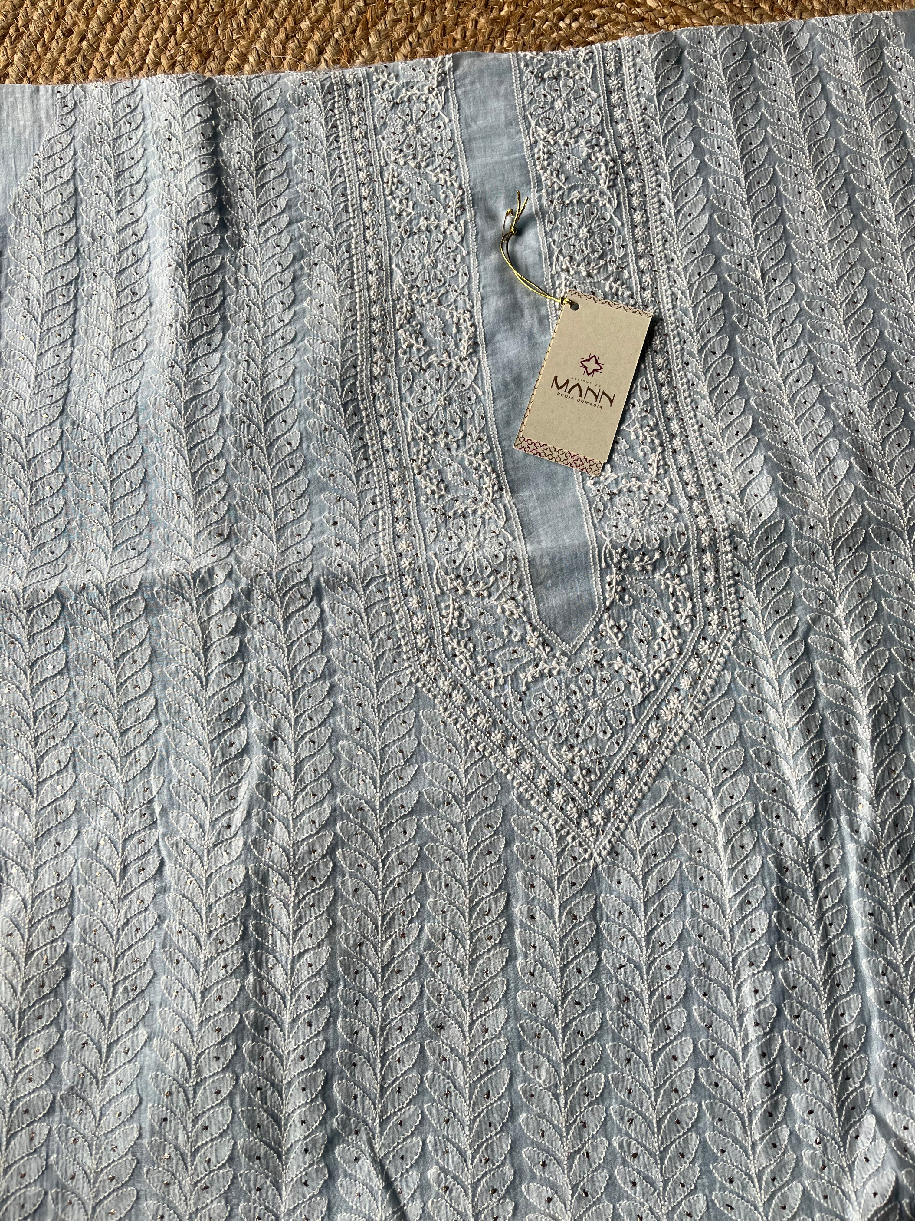 Powder Blue Mal Chanderi Handcrafted Chikankari Men's Kurta Fabric