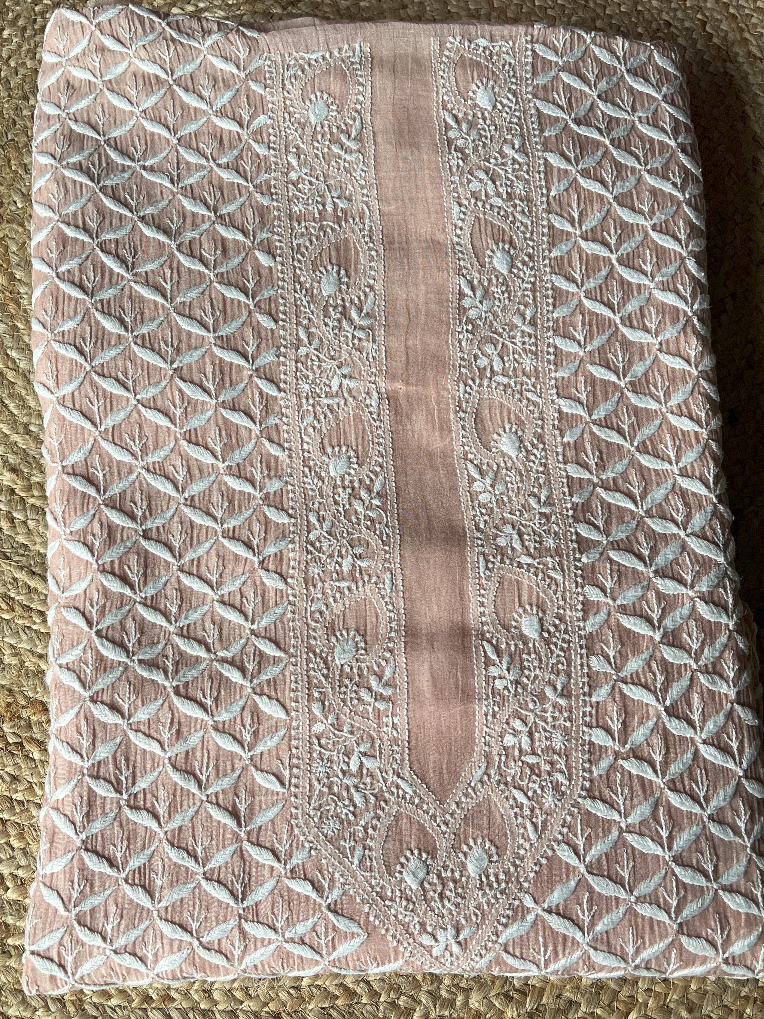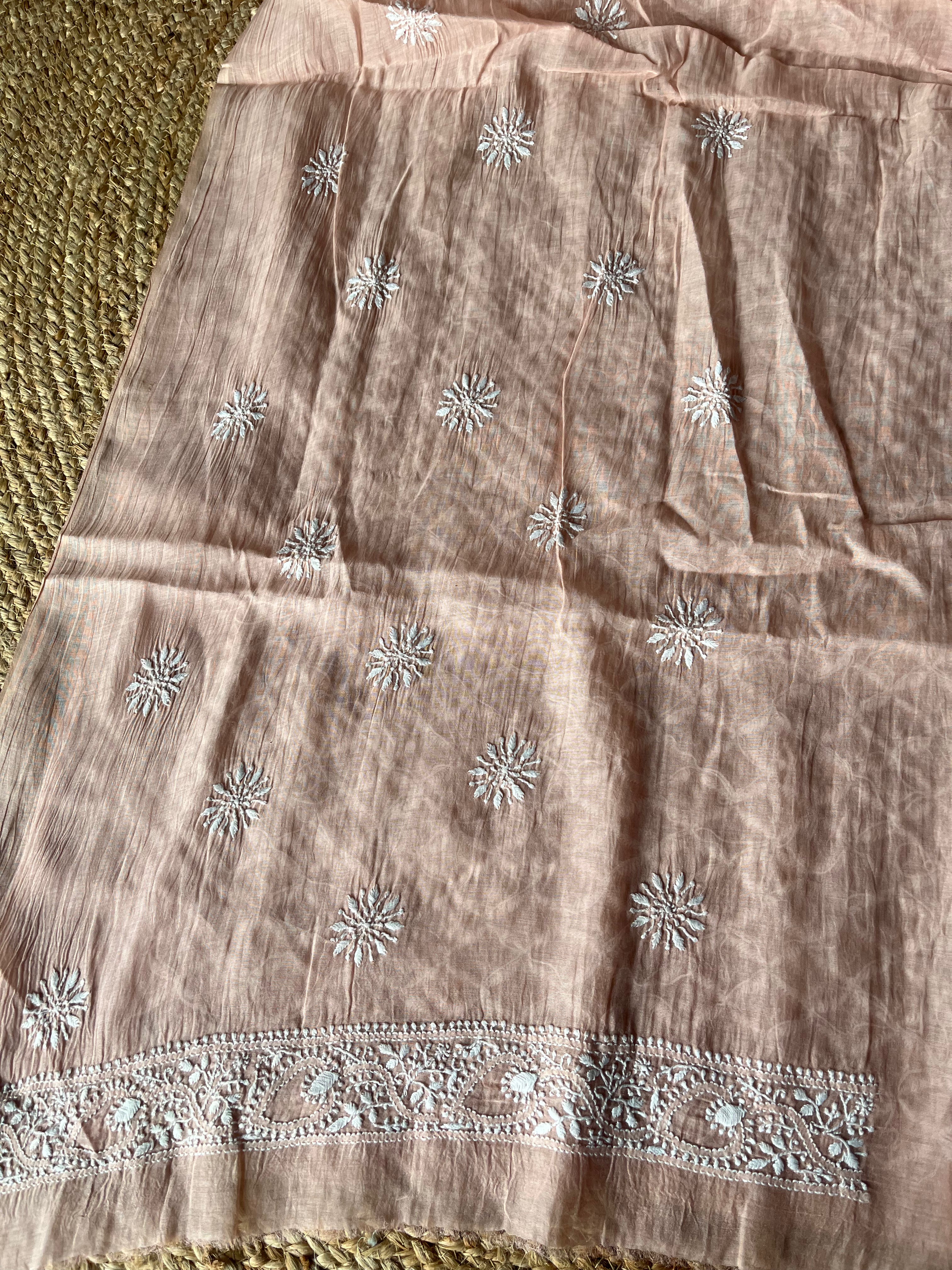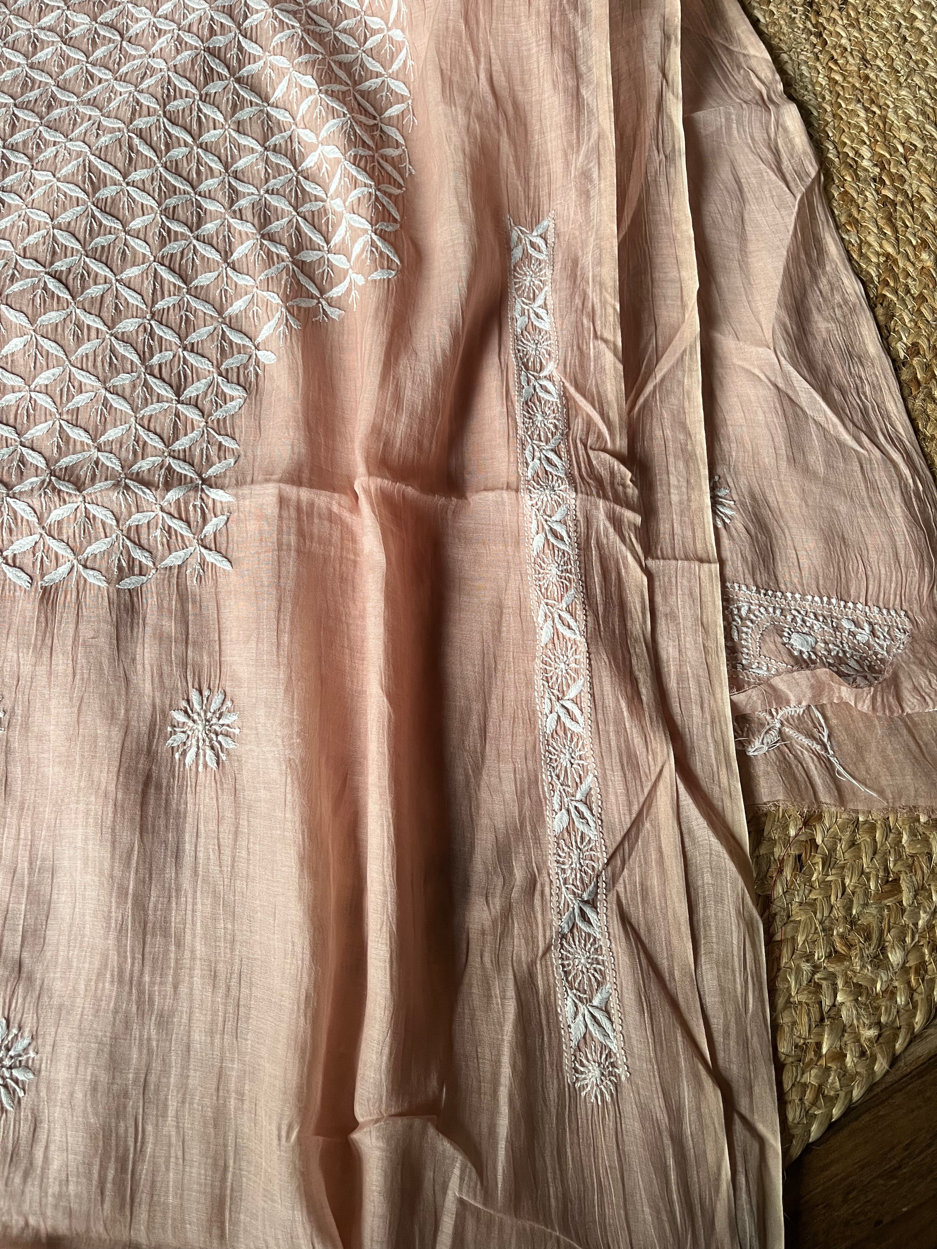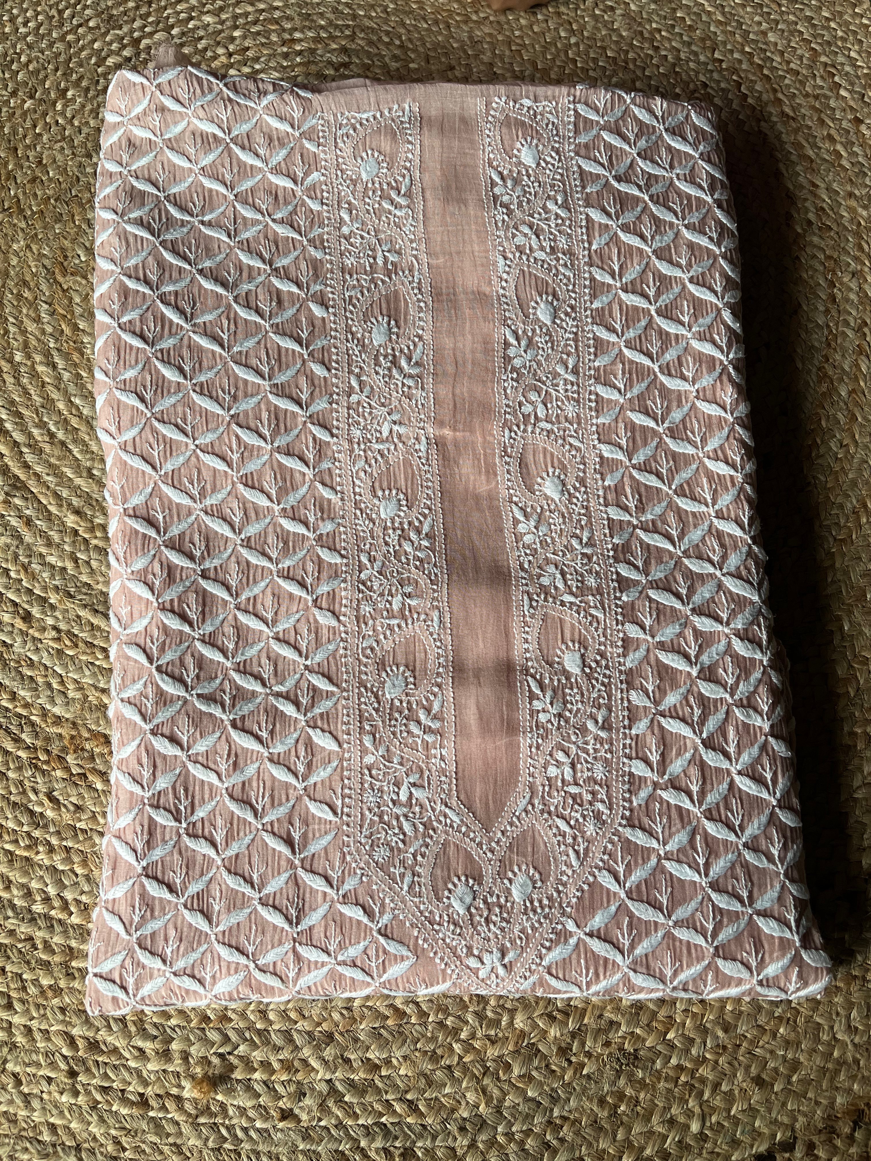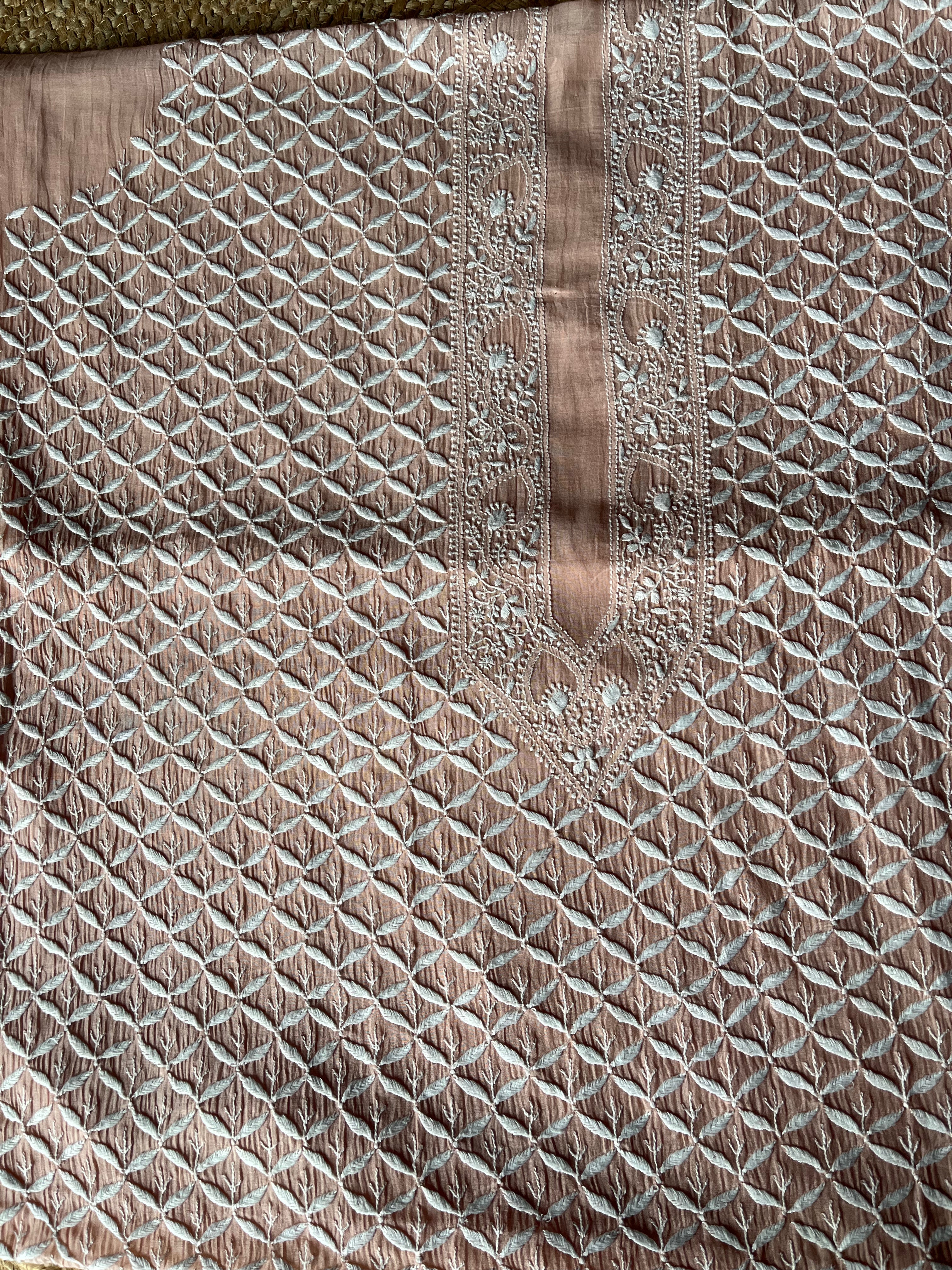 Powder Brown Mal Chanderi Handcrafted Chikankari Men's Kurta Fabric