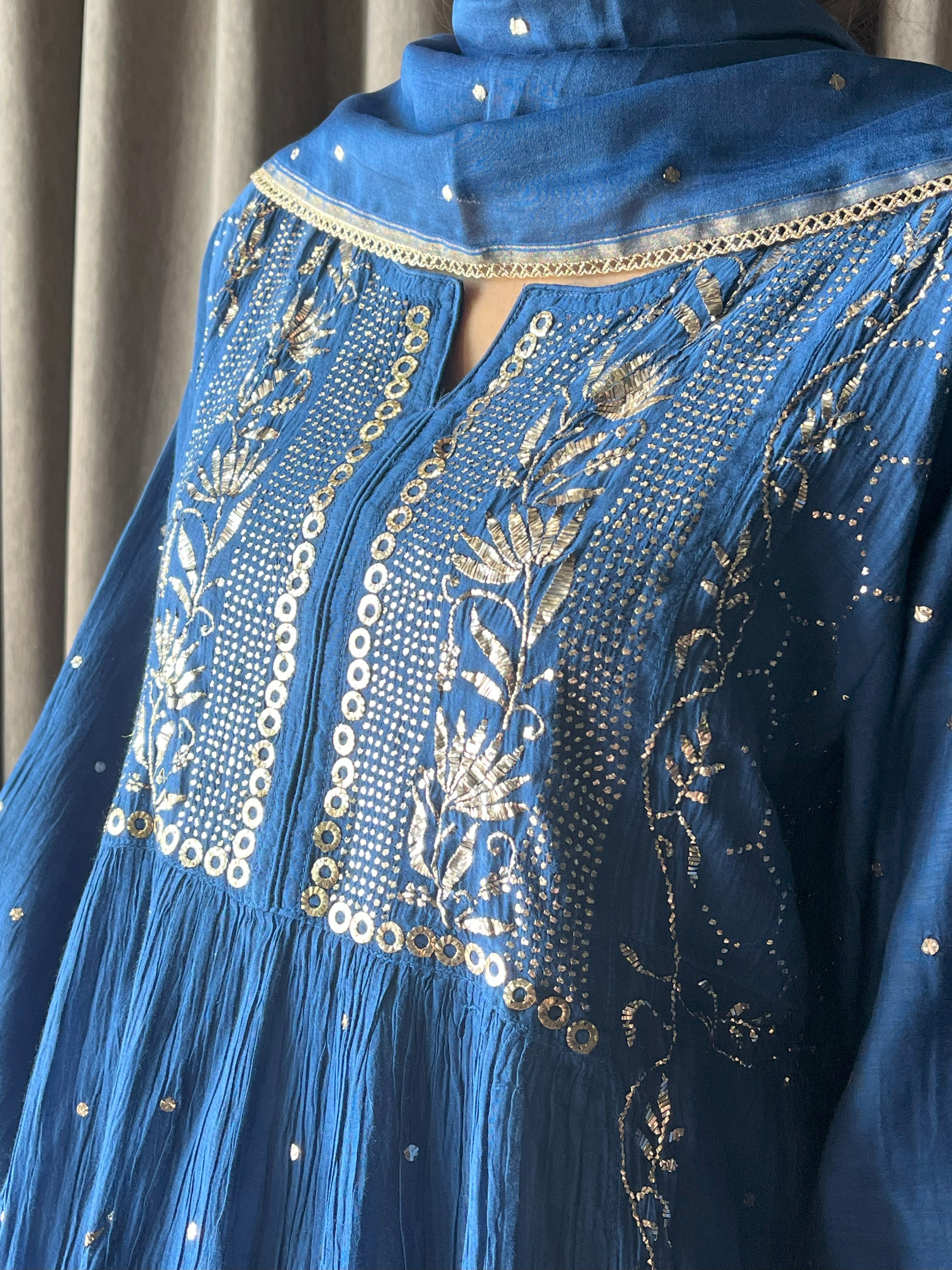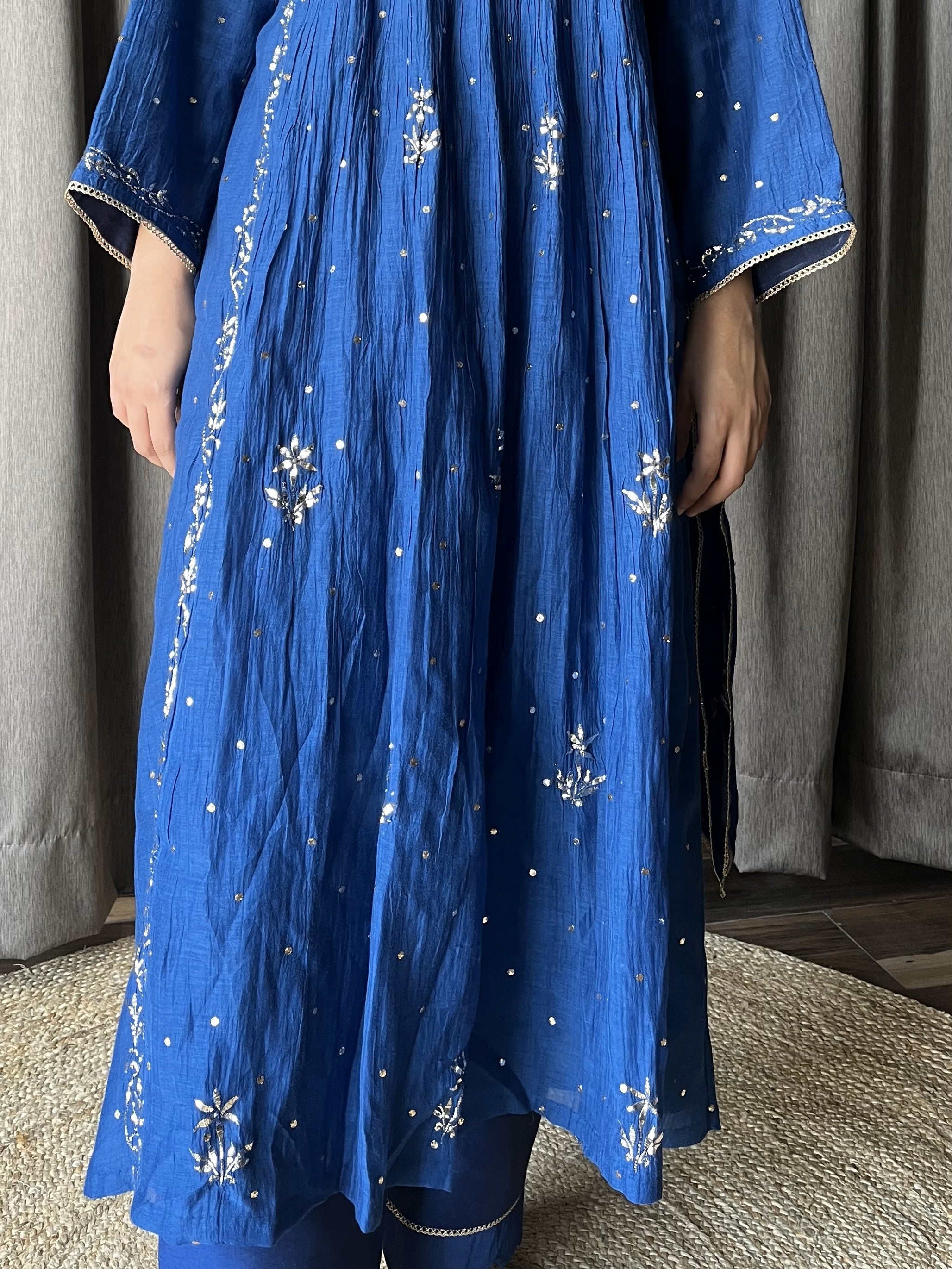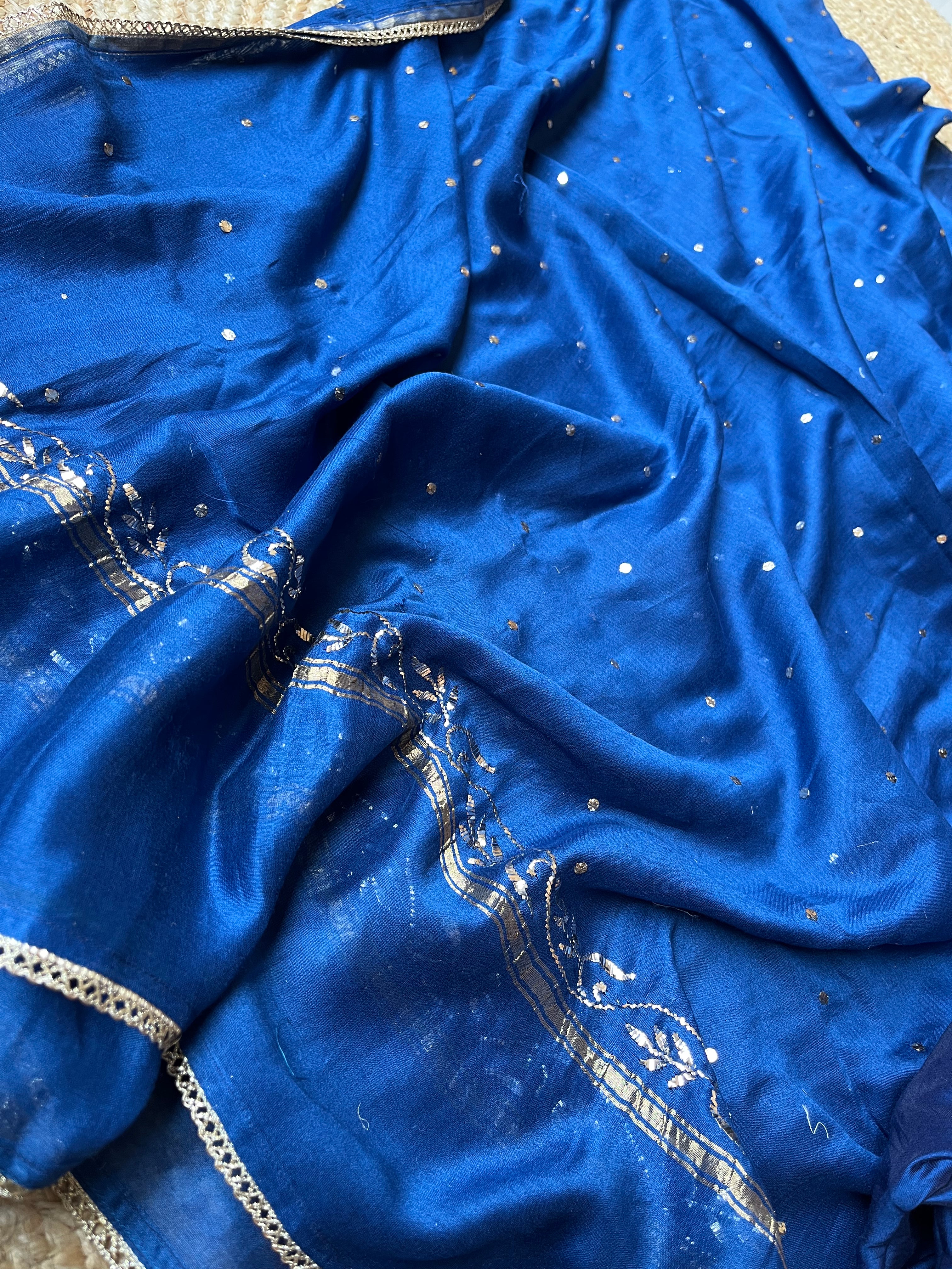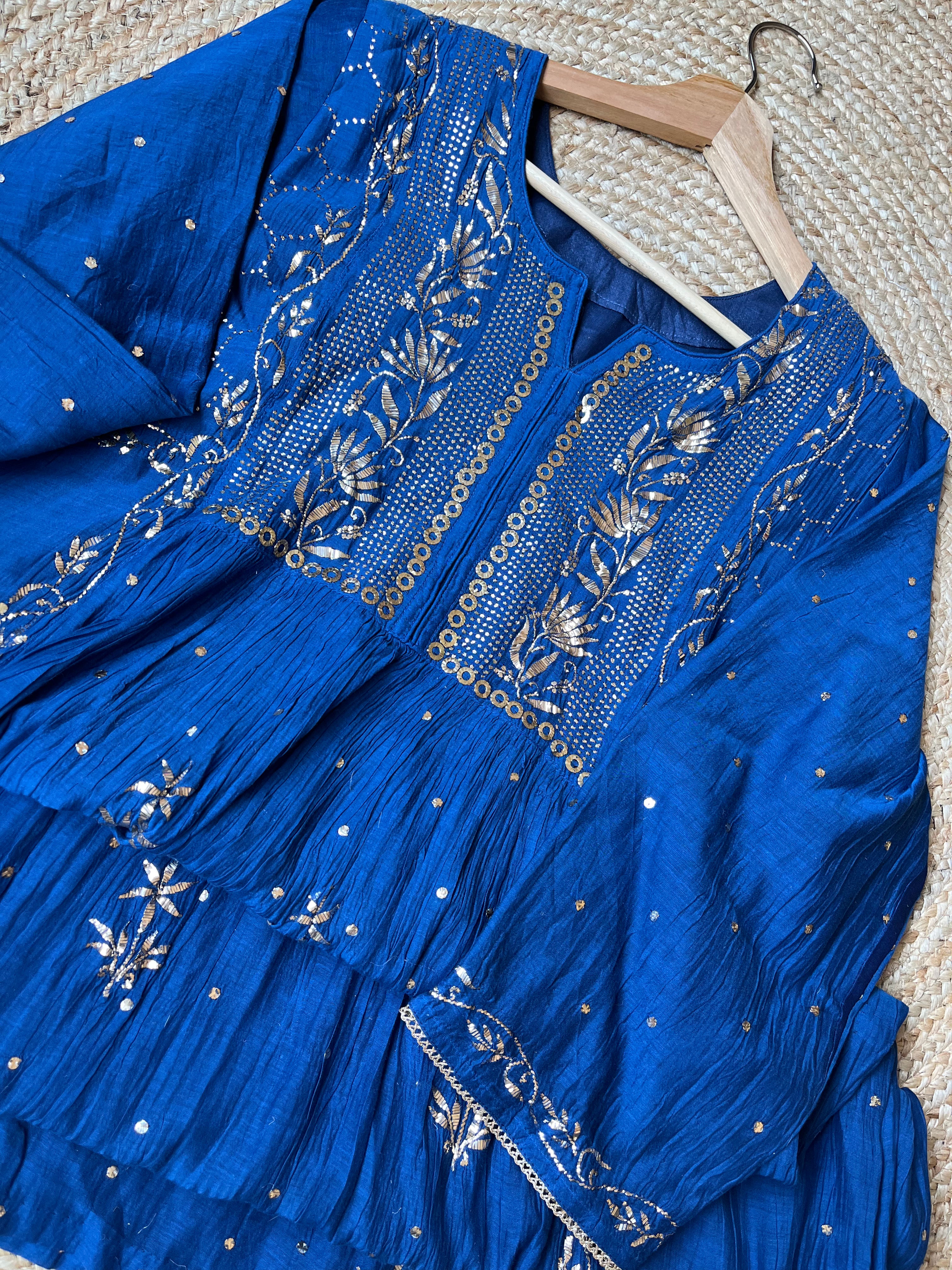 Royal Blue suit set in Mal embroided with fine mukaish chikankari