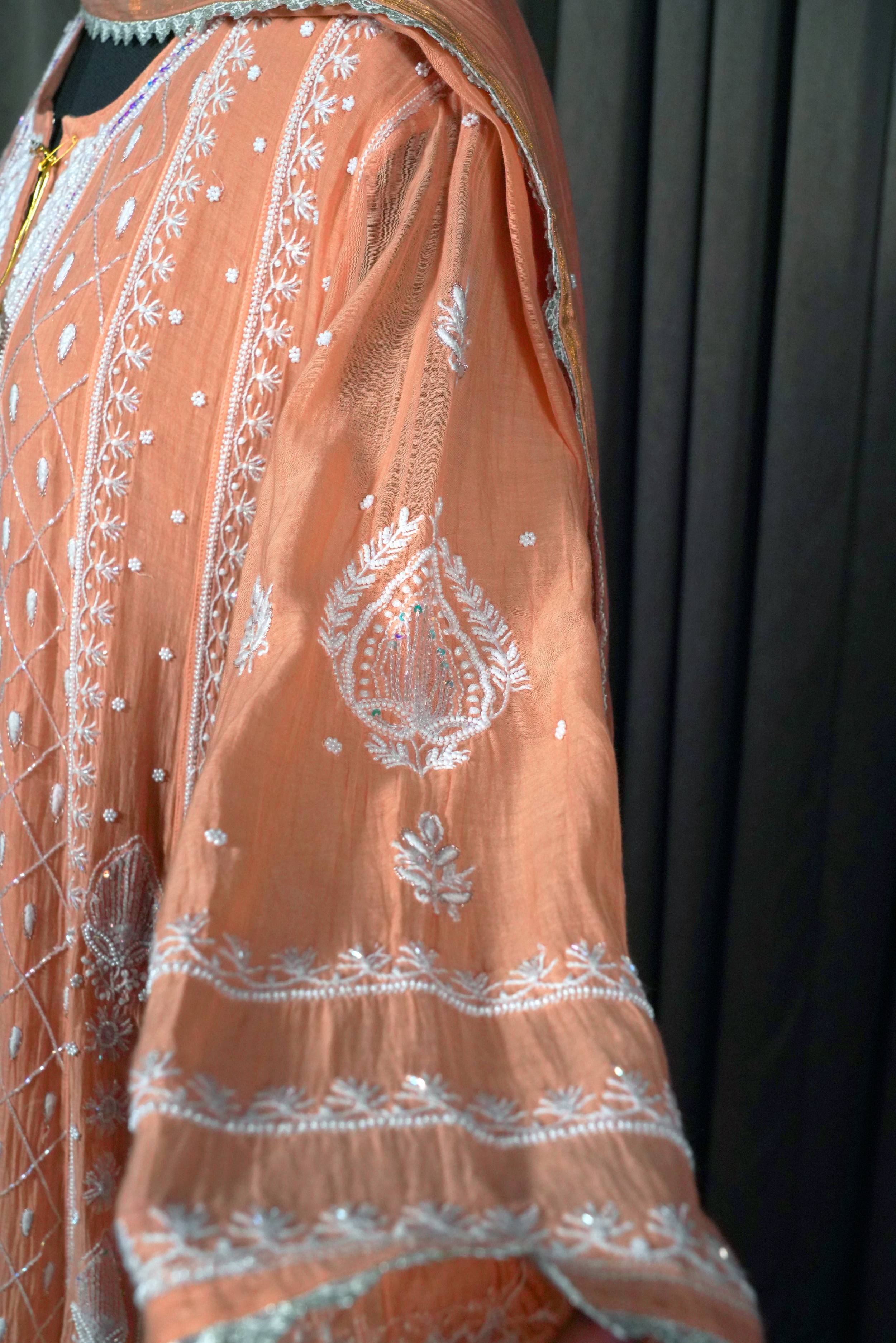 Front open Chanderi Anarkali Set with embellishments pearl cutdana and sequins