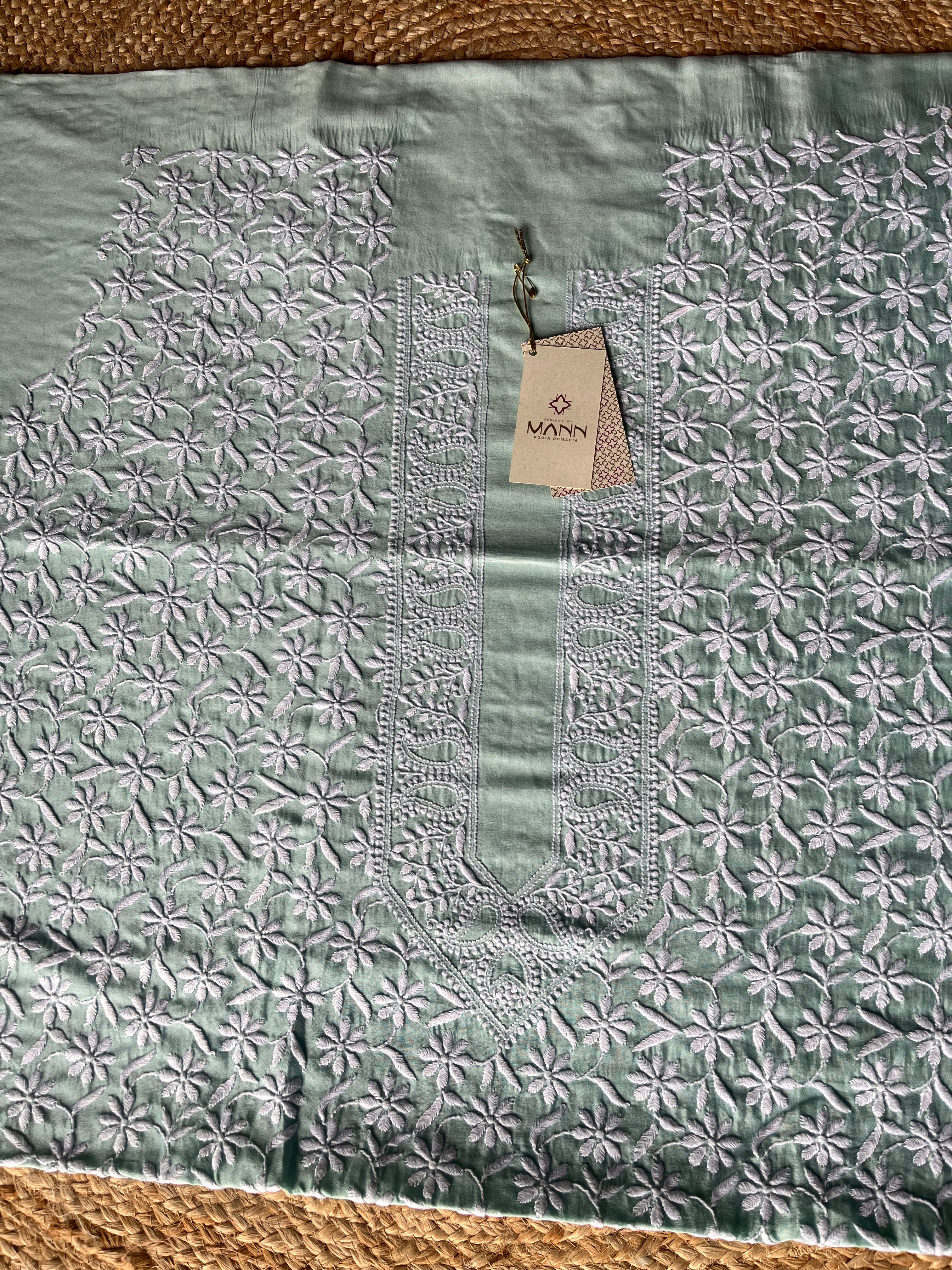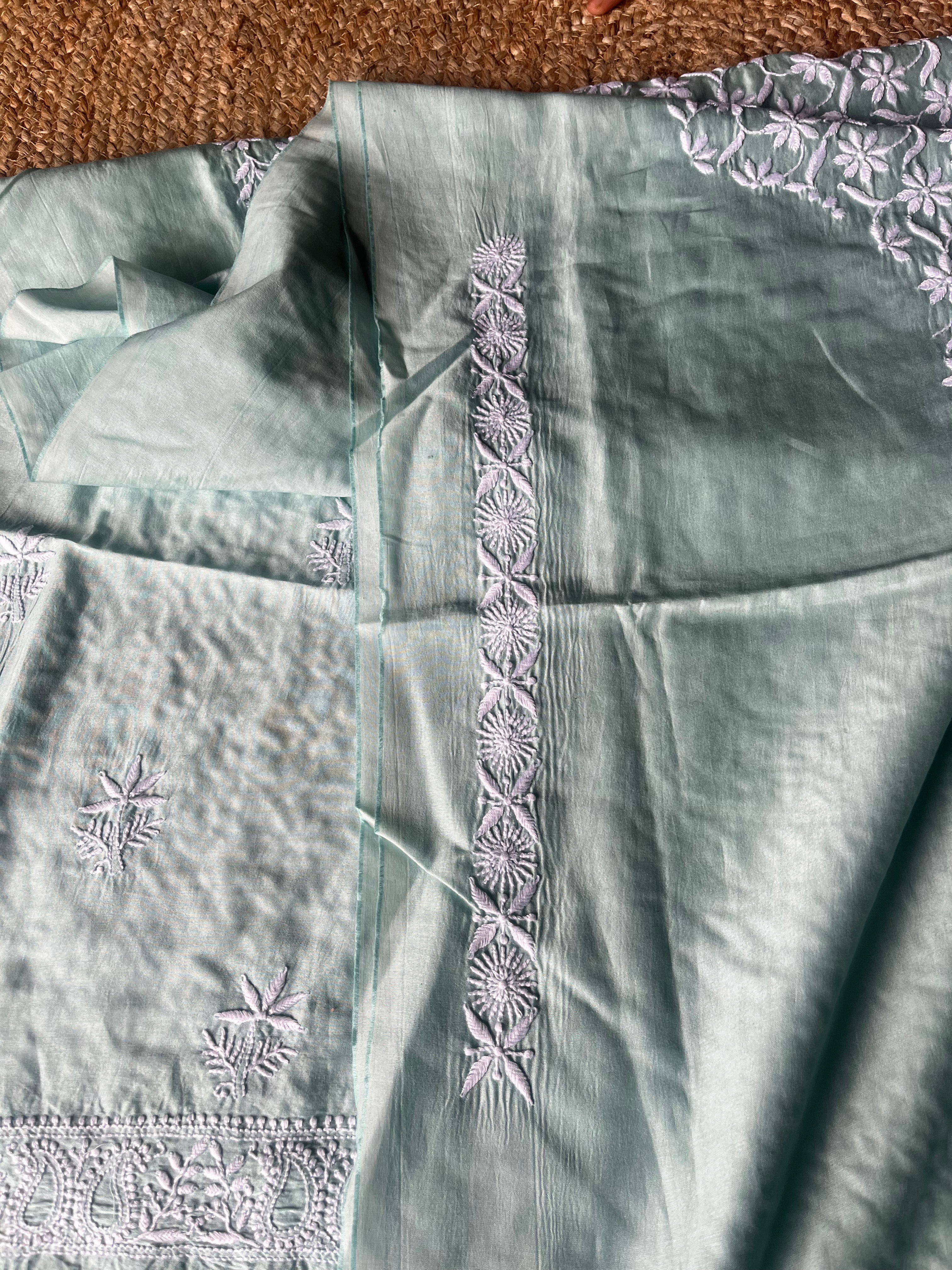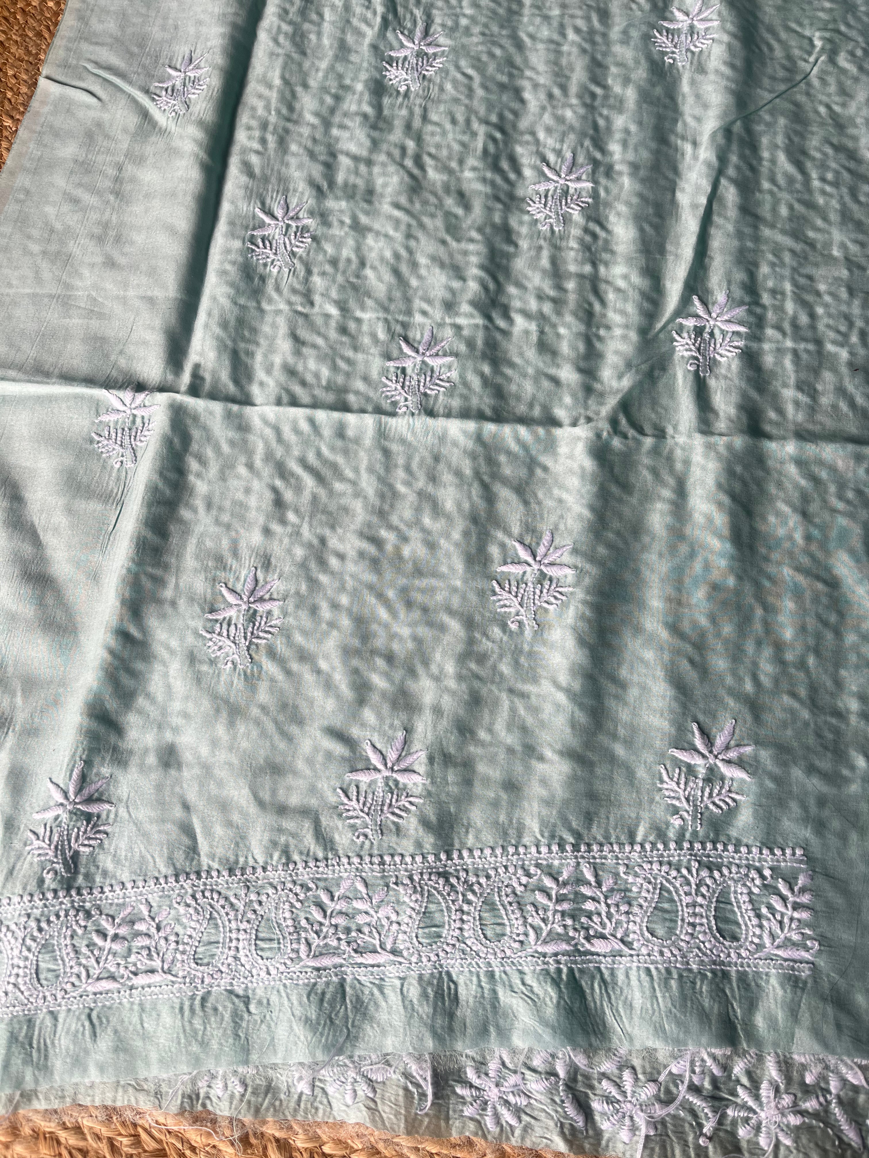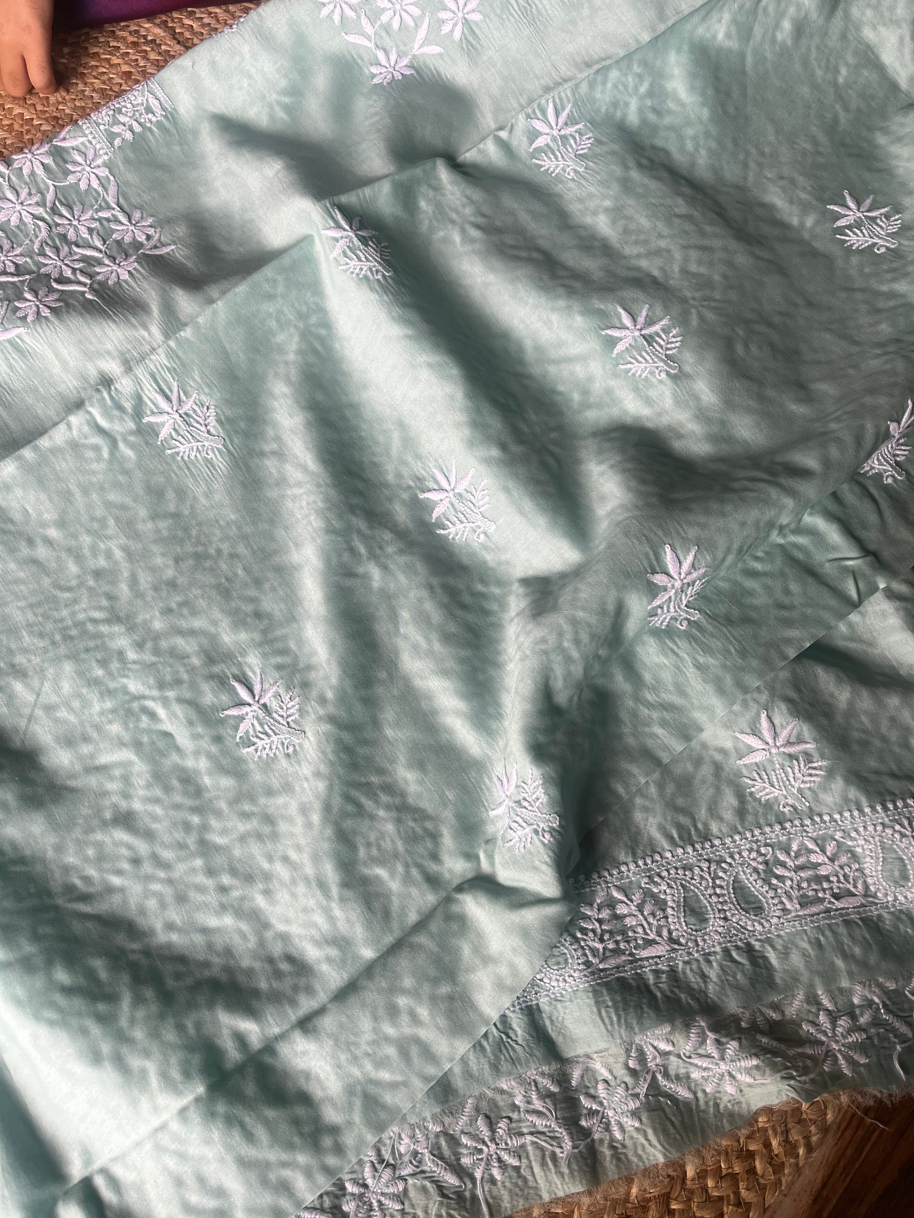 Teal Green Chanderi Silk Handcrafted Chikankari Men's Kurta Fabric